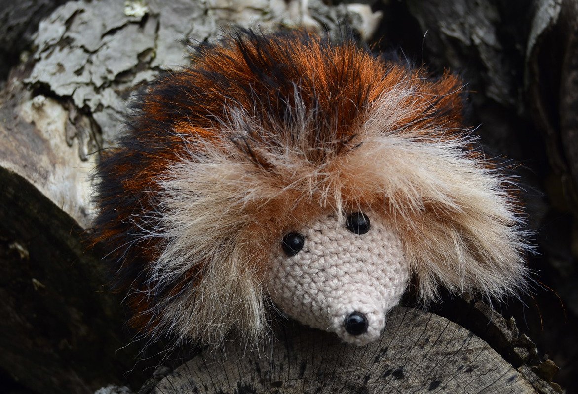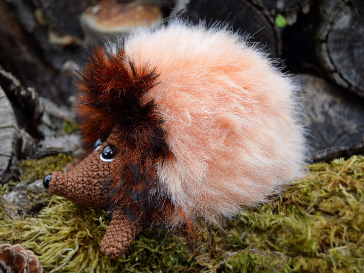 Die Igel in dieser Anleitung wurden in Fransengarn Lanas Stop LYNX Farbe 340 und Lanas Stop Rabbit Farbe 709 gefertigt.