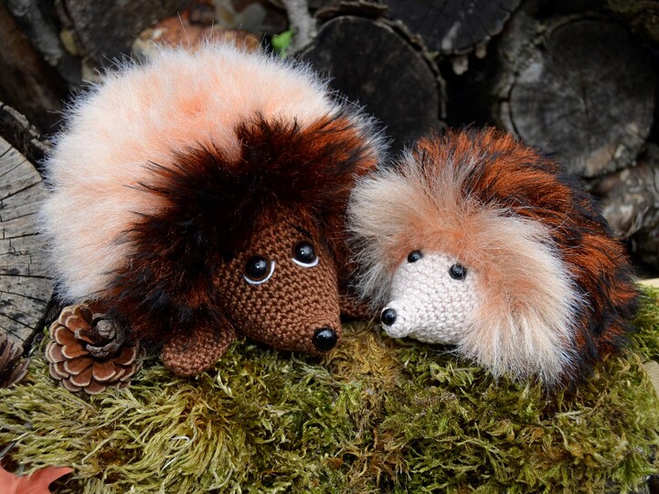 Die Anleitung besteht aus einem großen und einem kleinen Igel - die großen Igel kannst du mit veränderter Farbgebung und der Länge des Körpers umgestalten.