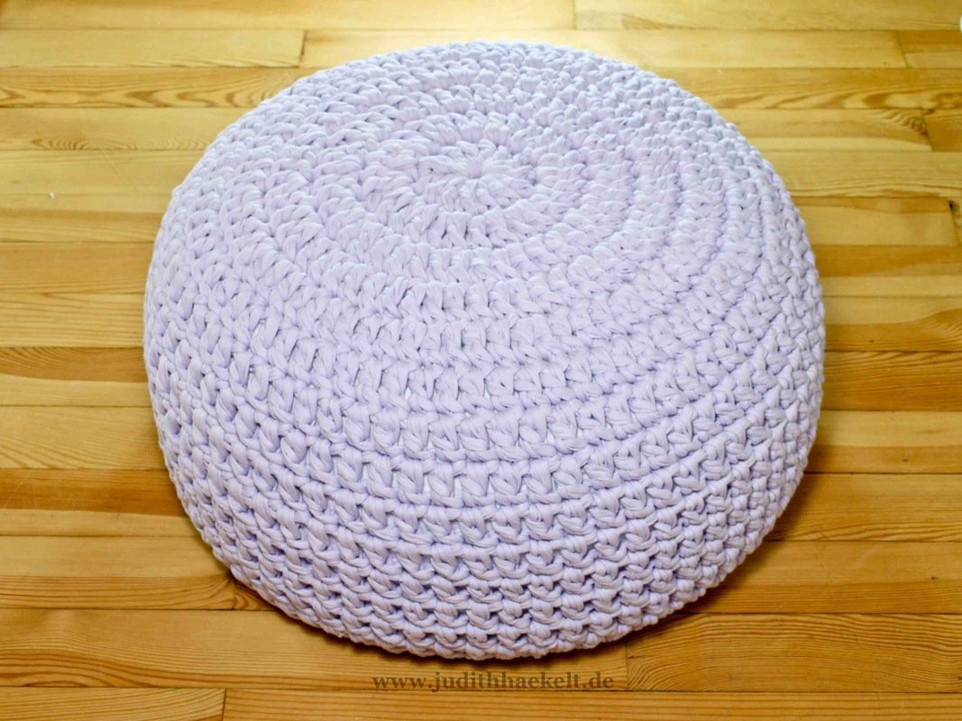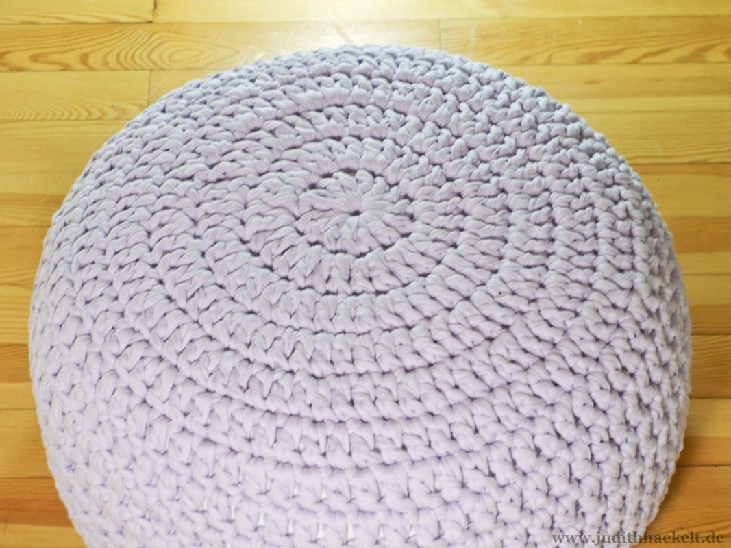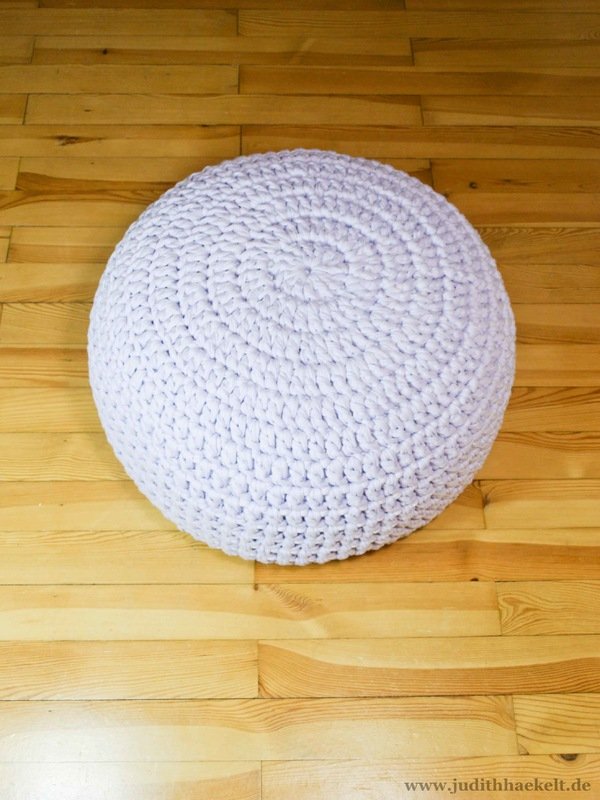 Ein wunderschöner Pouf aus Textilgarn ganz einfach zum selber häkeln.