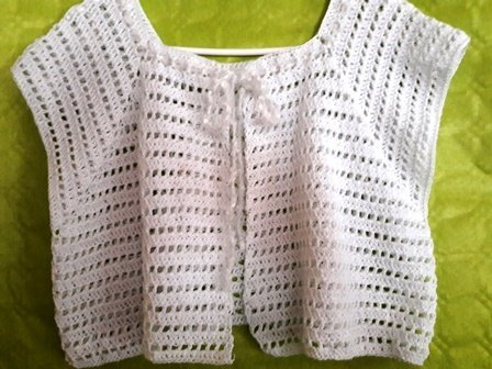 Ein kleines Jäckchen mit Liebe erstellt. Das Muster kann zur jeder beliebigen Größe Länge/Breite hergestellt werden. Nicht nur zur Hochzeit wäre das Muster - wenn man es etwas länger häkelt in anderen Farben hat man ein sehr schönes - wenn noch einfaches - schönes Teil im Schrank