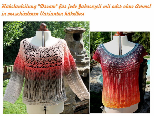 Luftmaschen, Kettmaschen, Stäbchen, Reliefstäbchen und Büschelmuster (in der Anleitung erklärt)
