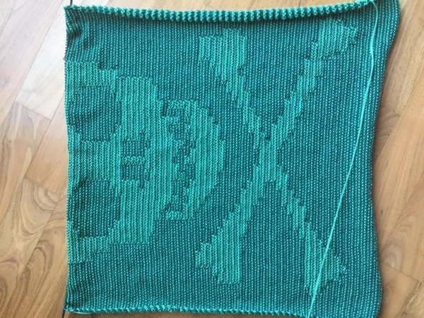 Der Poncho wird aus 2 Rechtecken von ca. 55x85 cm zusammengefügt und anschließend am Halsausschnitt und Aussenrand mit einem Rollrand versehen, den ich im I-Cord beendet habe. Materialverbrauch für die beiden Rechtecke sind je Farbe ca. 250g, für den Rollrand benötigt man noch ca. 100g zusätzlich. Der Poncho wird in 2 Farben gearbeitet. Dabei werden stets 2 Reihen im Farbwechsel gestrickt. Das Muster entsteht durch den Wechsel von rechten und linken Maschen in den Rückreihen