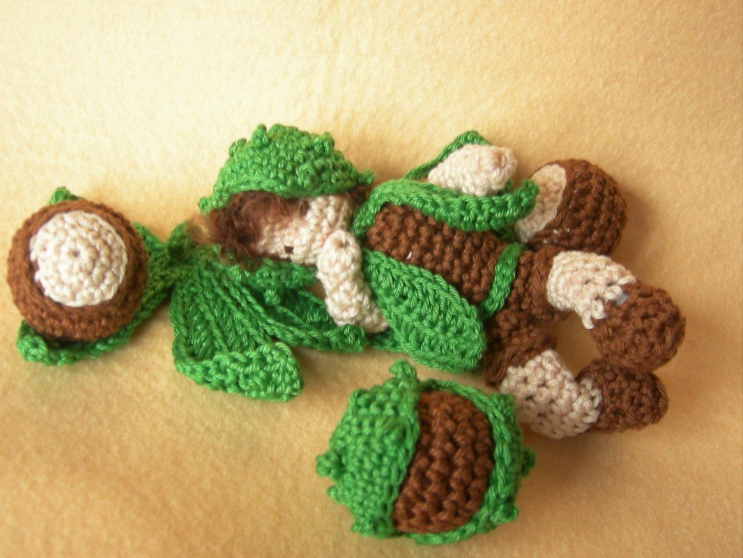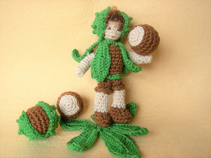 Häkle als Herbstdekoration für den Jahreszeitentisch oder die Fensterbank das reizende Blumenkind Kastanie! Es hat bewegliche Arme und Beine, so dass du es in vielen verschiedenen Positionen aufstellen kannst.