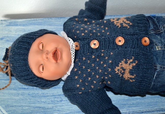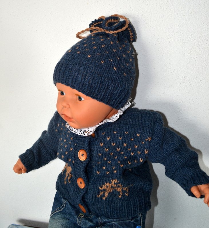 ***Strickanleitung für eine hübsche Jacke mit passender Mütze in Trachten- Look in drei Größen.