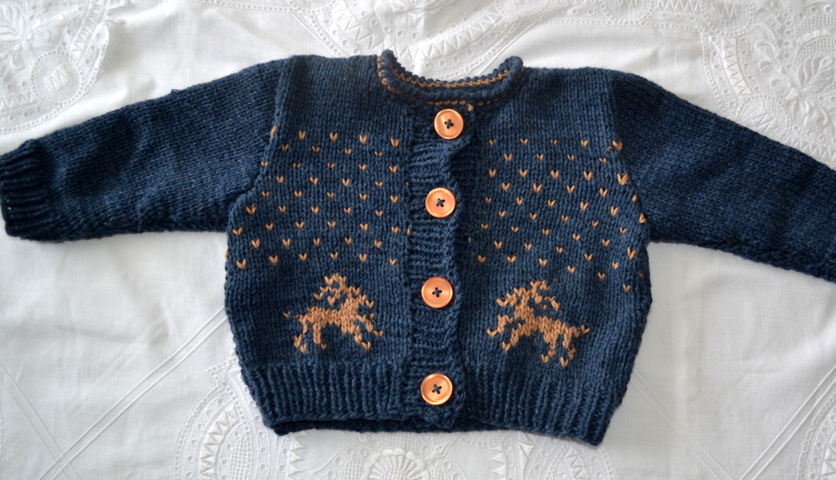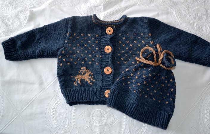 Sehr einfaches Muster in Norwegertechnik. Man kann das Ganze auch einfarbig stricken und nachher das Muster besticken.