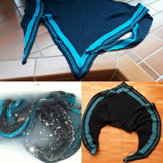 Die Anleitung enthält ausgeschriebene Reihen und Fotos. Meinen lieben Teststrickerinnen, denen ich an dieser Stelle noch einmal herzlich danken möchte, hatten großen Spaß beim Stricken und sind teilweise schon am 2. Lavastrom. Außerdem werden sie sehr oft auf ihr schönes Tuch angesprochen.