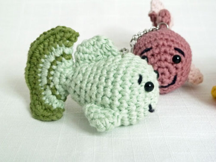 Häkelanleitung für bunte Fisch-Schlüsselanhänger