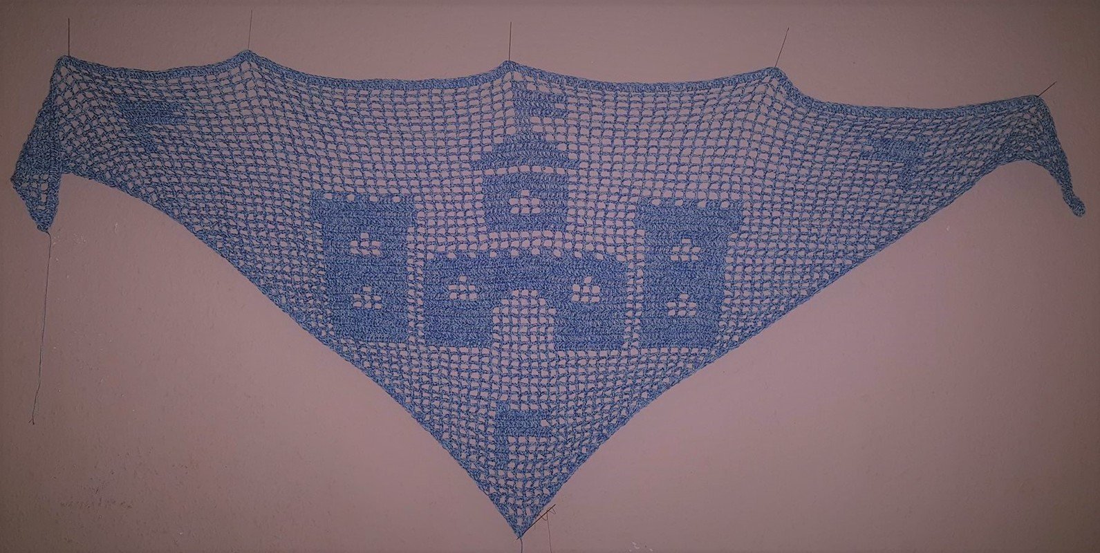 Das Tuch wurde mit ca. 500 Metern 3- fach gefachtes Farbverlaufsgarn mit einer Nadelstärke 3 gehäkelt. Das Tuch ist ca. 137 cm lang und ca. 50 cm breit.