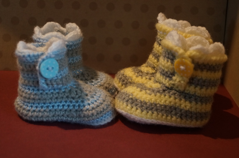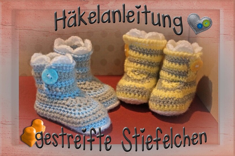 Falls ihr die Schuhe lieber einfarbig oder mit mehreren unterschiedlichen Streifen mögt dürft ihr hierbei Eure eigenen Ideen umsetzen und wenn Euch die kleinen Rüschchen bei Schuhen für Jungs zu verspielt sind könnt Ihr sie ganz einfach weglassen.