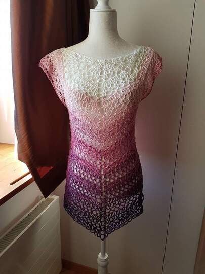 Die Tunika wird in Runden gearbeitet. Man kann sie als kurze oder lange Tunika machen, oder auch mit Ärmeln.