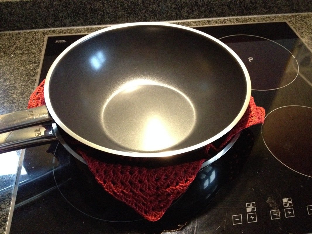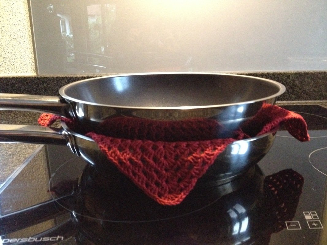 Mit diesem ganz einfach zu häkelnden Pfannenschutz werden Eure wertvollen beschichteten Pfannen nicht mehr zerkratzen, wenn ihr sie im Schrank stapeln wollt. Die Größe ist ganz beliebig an jede Pfanne anpassbar ganz ohne lästiges Umrechnen von Maschenproben.