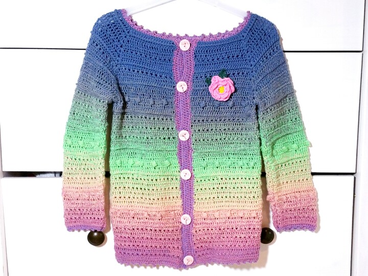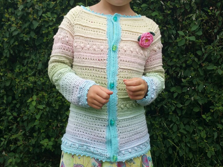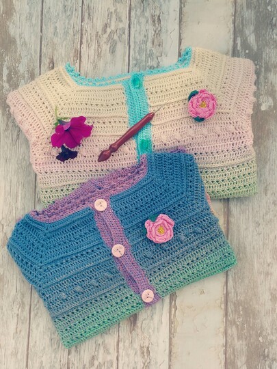 Dieses Jäckchen ist mit einem Scheepjes whirl gehäkelt 225g-1000m (100g - 455m)