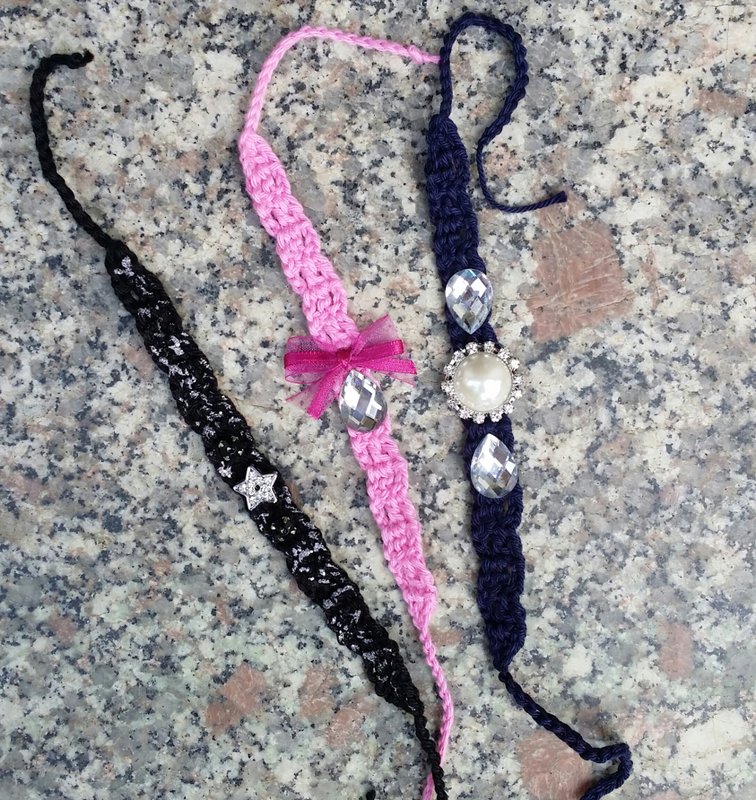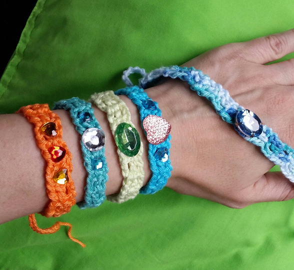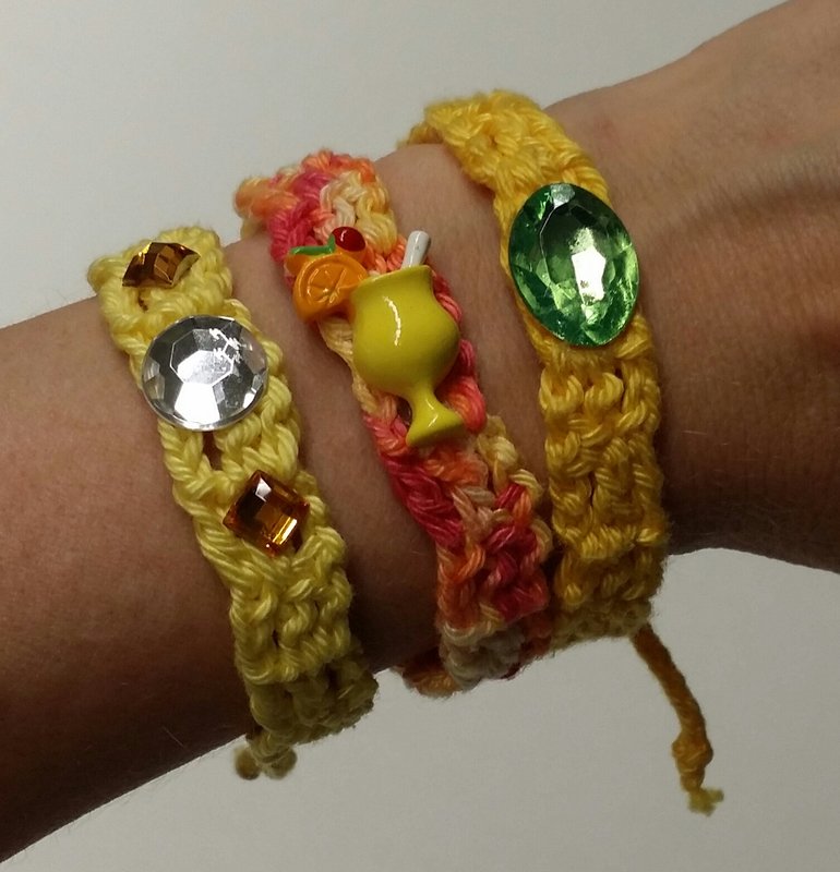 Die gehäkelten Freundschaftsbänder sind ideal für den Sommer. Sie sind schnell gemacht und sowohl solo als auch mehrere zusammen sind ein echter Hingucker. Die Bänder können schlicht getragen werden oder auch mit Perlen und allerlei Glitzer dekoriert werden.
