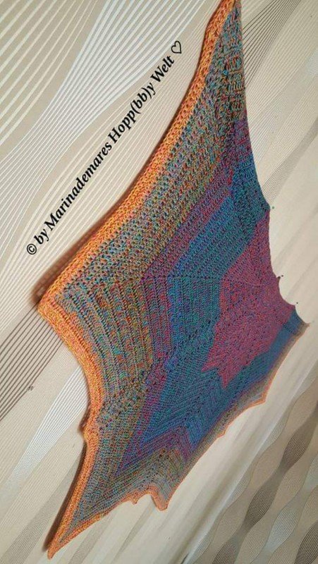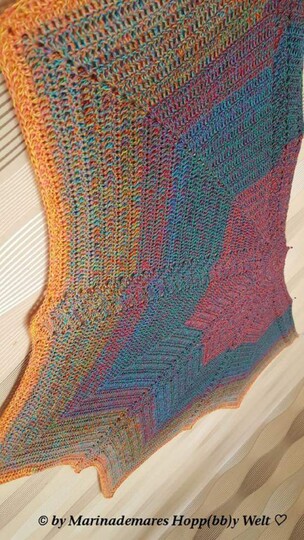 Verbrauch: meine Sarina auf dem Titelbild hat eine Länge von ca. 1,25m. Mit 4 fädiges Verlaufsgarn ca. 1100m, ca. 250g, 50/50BW/PA, NS 3,5.