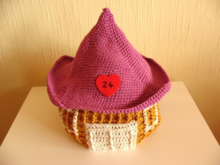 Die Häkelanleitung für das Wichtelhaus umfasst 19 Seiten mit vielen Detailfotos und den einzelnen Schritten. Auch die Maße sind angegeben.