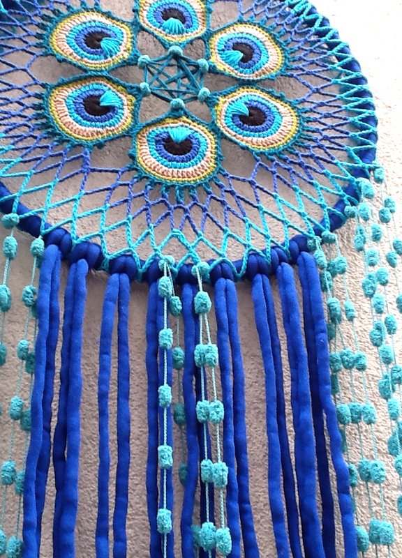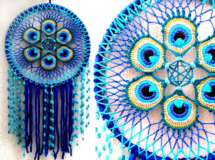 Der bezaubernde Alb-Traumfänger „Pfauenauge“ ist eine wundervolle Handarbeit die richtig Freude macht.