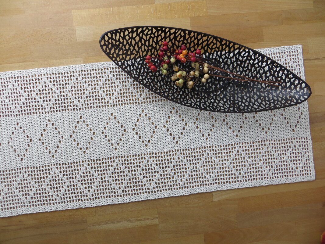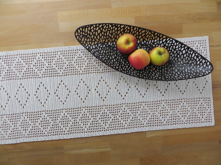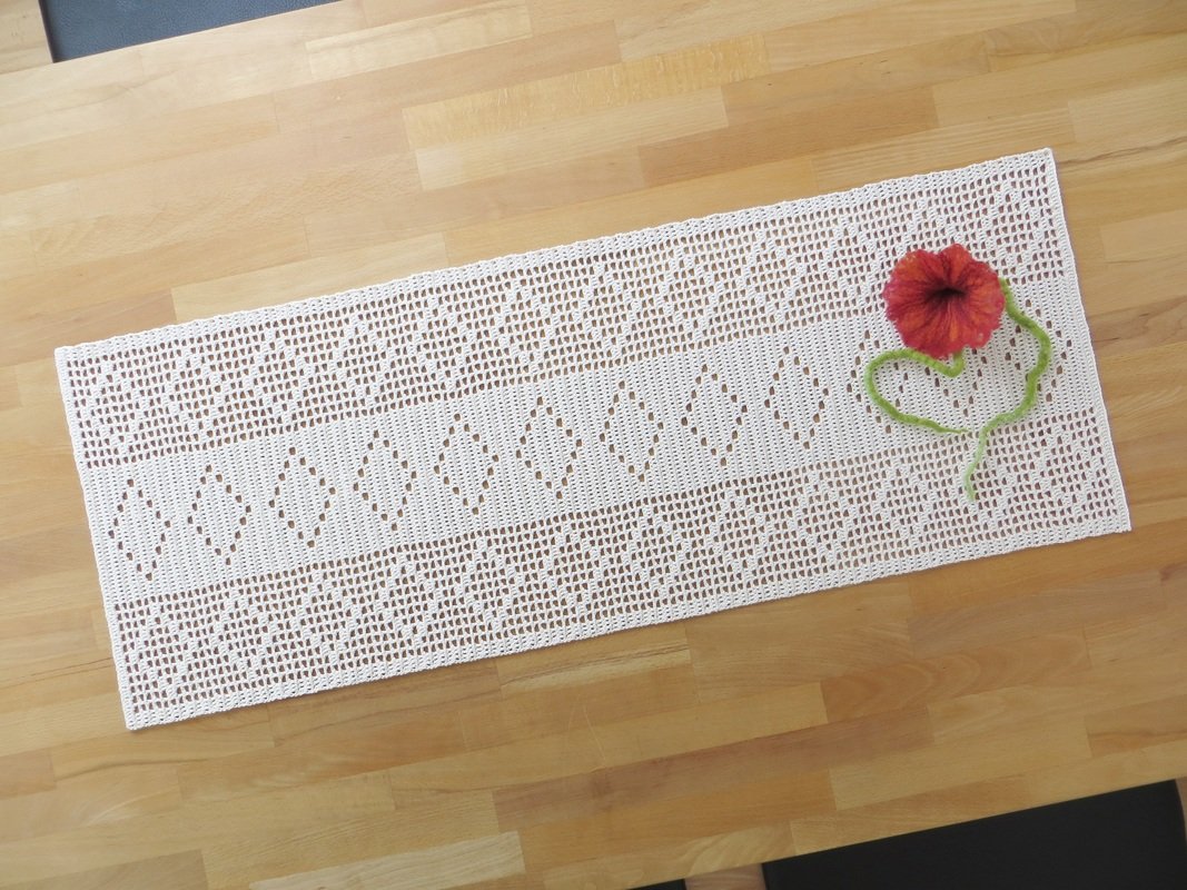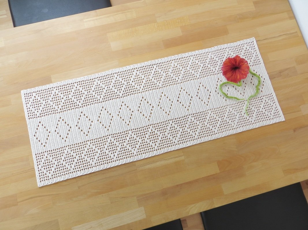 Häkelanleitung für Tischläufer mit tollem Rautenmuster