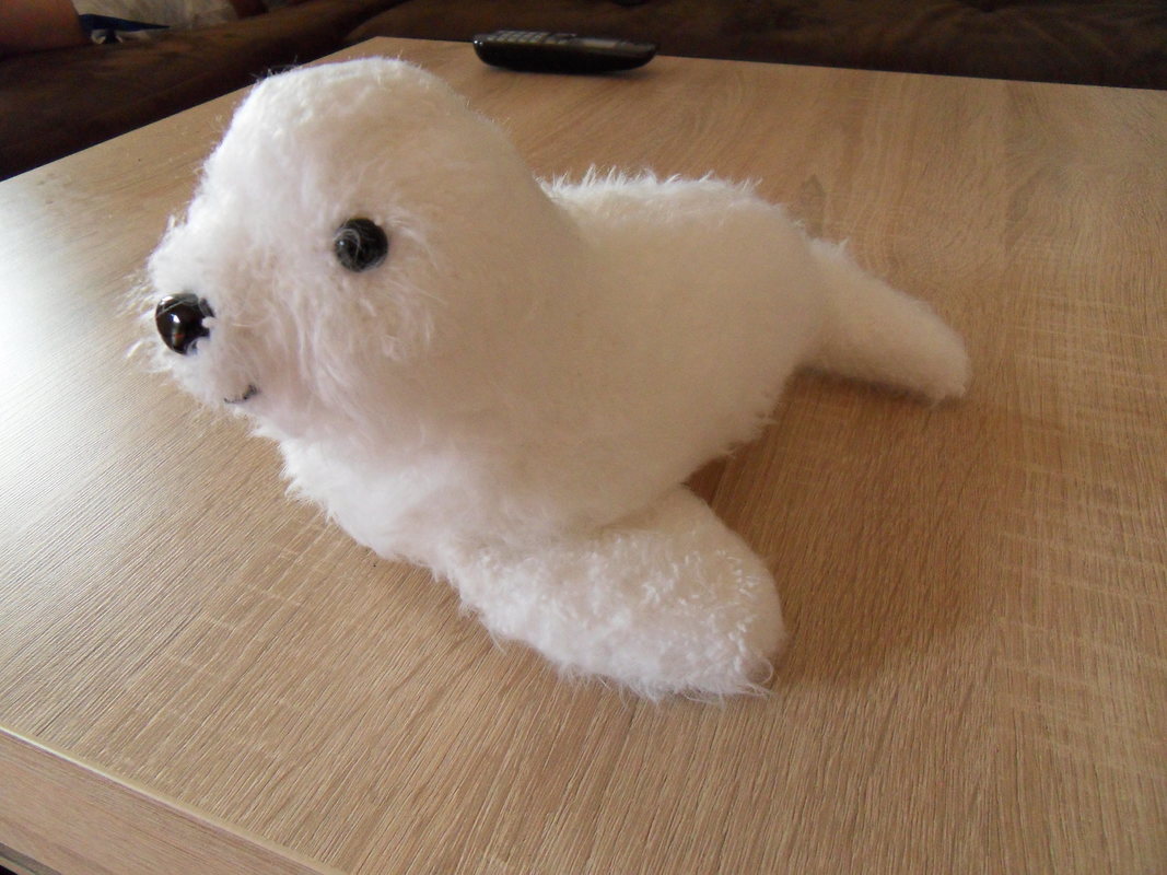 Hallo ich bin Robby der Baby Seehund. Ich bin vom Kopf bis zur Schwanzflosse 30cm groß. Der kleine