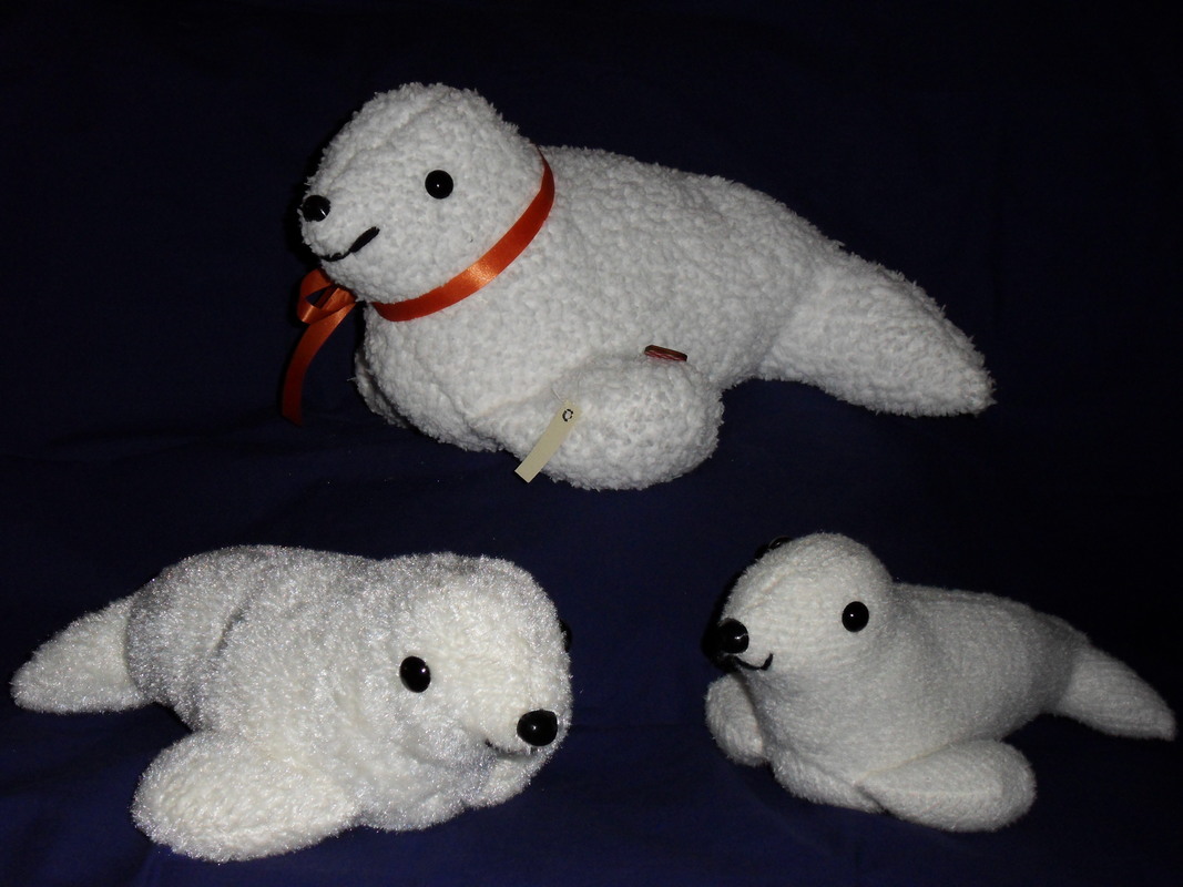 mit größeren Nadeln arbeiten, dann wird der Seehund größer. Er kann im Wollwaschprogramm ohne