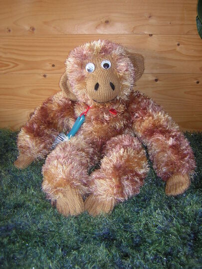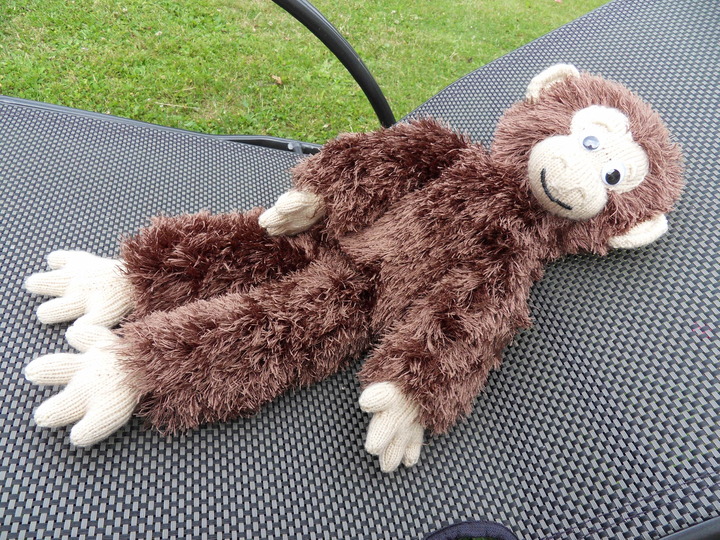 Hallo ich bin Brauni der kleine Affe. Ich bin sehr verschmust und liebe es wenn man mit mir kuschelt. Man kann mich waschen. Ich bin mittelschwer zum nachstricken. Mein Frauchen hat sich sehr große Mühe gegeben mich so gut wie möglich zu beschreiben. Mit einigen Vorkenntnissen beim stricken sollte ich kein Problem mehr sein. Ich bin ca. 52 cm groß.