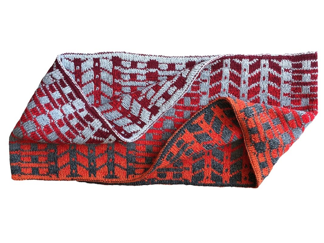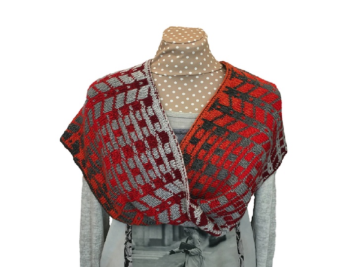Die Besonderheit des Amplitudo ist, dass er mit dünnem Garn gestrickt wird, das Ergebnis aber aussieht wie Grobstrick. Durch die Double-Face-Technik lassen sich wunderbare Farbeffekte bilden, wenn man zwei verschiedene Farbverläufe nutzt.