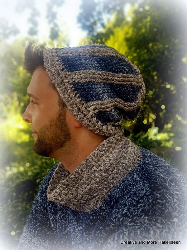 Die Mütze ist zwar für einen Kopfumfang von 64 cm gehäkelt, kann aber nach Belieben größer oder kleiner gehäkelt werden. Und nicht nur Männer können diese coole Mütze tragen, auch Frauen steht sie super.