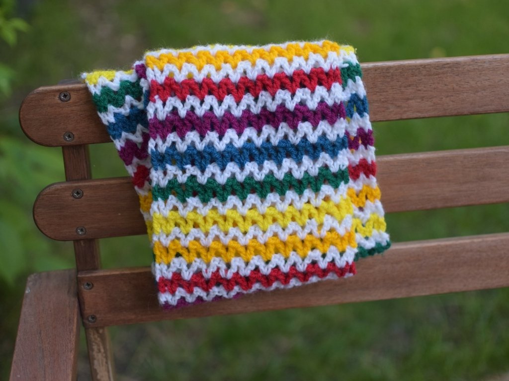 Einfache Anleitung eines gehäkelten luftigen Schals. Der Schal kann mit beliebiger Wolle gehäkelt werden und er kann beliebig breit oder lang gehäkelt werden.