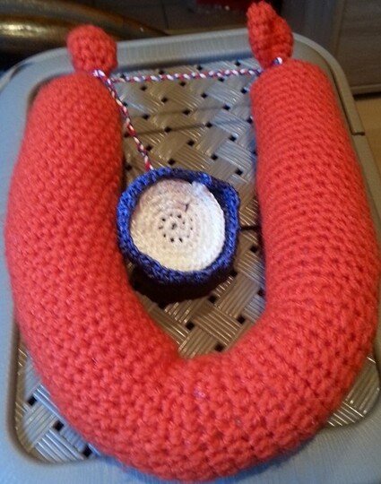 Hier wird eine Fleischwurst gehäkelt für den Kaufladen oder für die Kinderküche zum spielen.