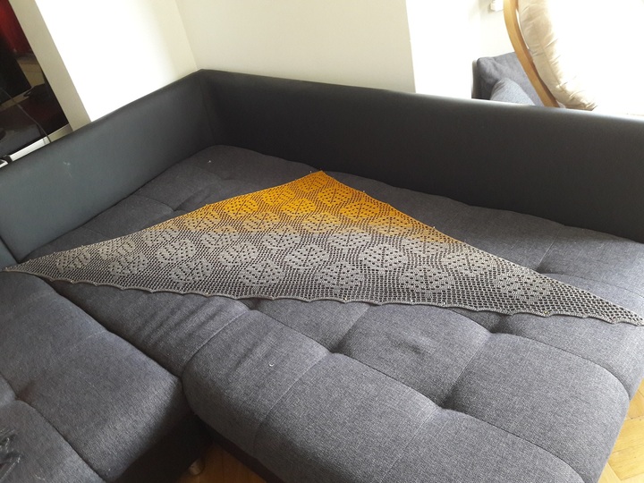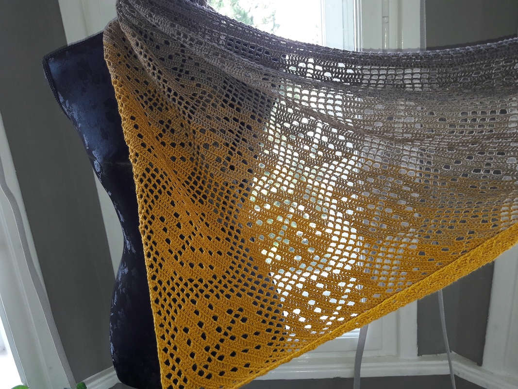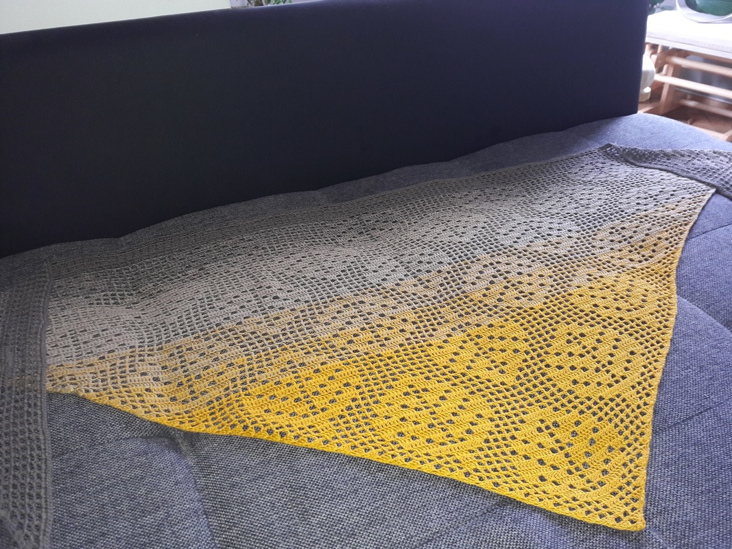 Schönes Herbsttuch mit Blättermuster, in Filettechnik, wird aber in Wort und Bild erklärt.