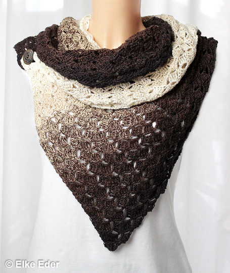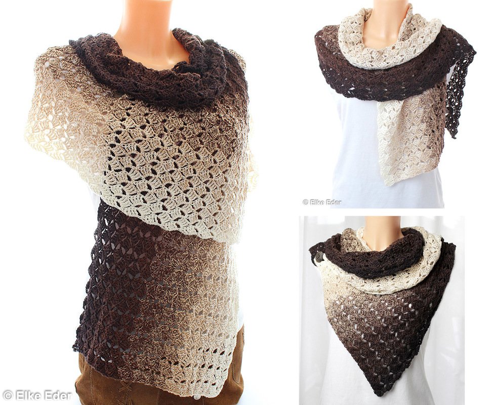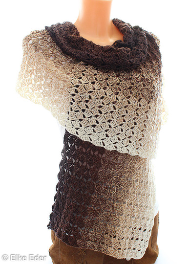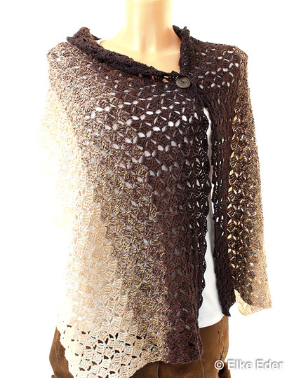 Durch zwei geschickt platzierte Knöpfe ist dieses Tuch ein wahrer Verwandlungskünstler. Da die Knöpfe durch das Lochmuster passen, ist es nicht nötig Knopflöcher einzuarbeiten - somit können die Knöpfe an jeder beliebigen Stelle fixiert werden - es ergeben sich vielfältigste Tragevarianten!