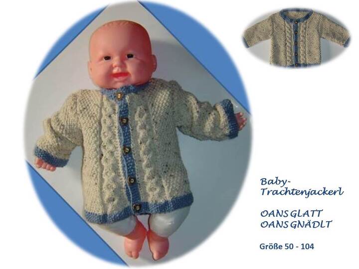 PDF Baby-Maße dieses Trachtenjacken-Modells Gr. 50 bis 104 im Download enthalten.