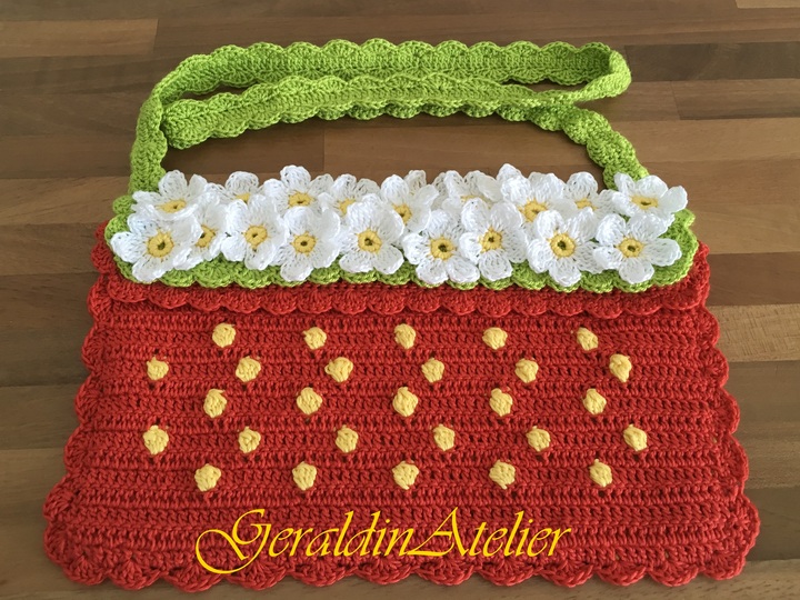 " Erdbeere mit Blümchen " Umhänge Tasche für Mädchen Häkelanleitung