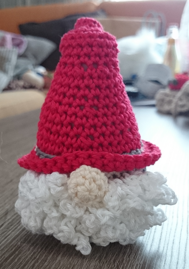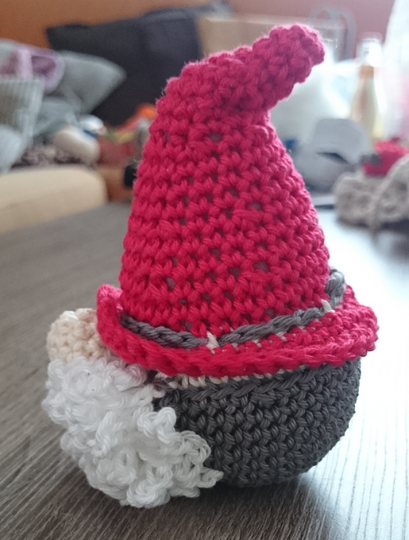 Mit der angegebenen Wolle wird der Troll ca. 12 cm hoch (mit abgeknickter Mütze ca. 10 cm).