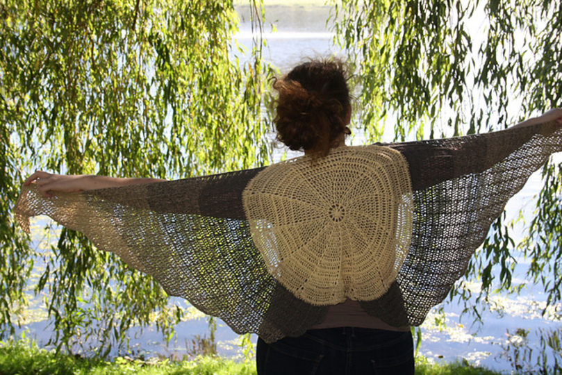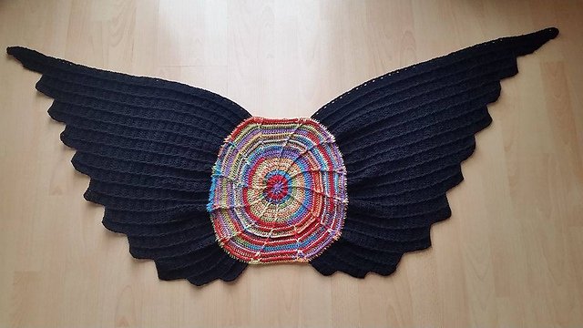 Die Flügel eignen sich sehr gut zu umschlingen der Schultern und halten warm.