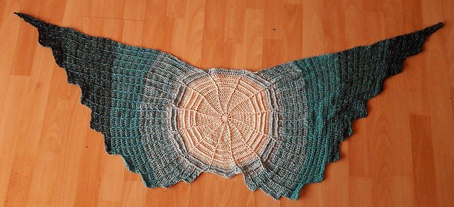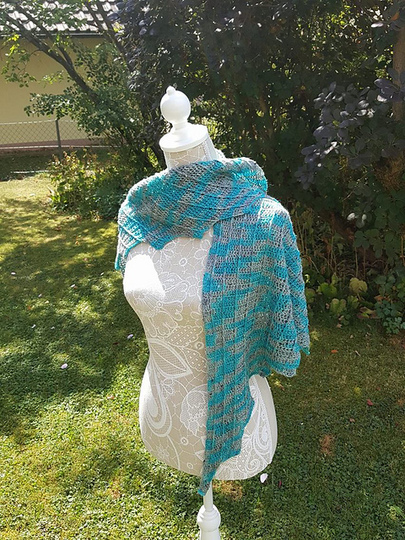 Ein sehr elegantes und aufmerksamkeiterregenes Tuch das in jeder größer gearbeitet werden kann. Man sollte nur darauf achten, die Garnmenge an die Größe anzupassen.