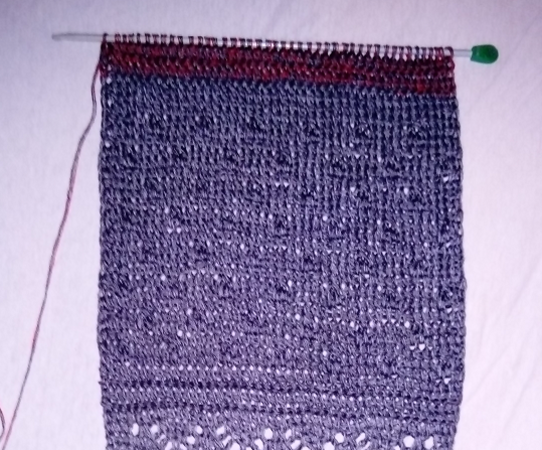 Der Schal wird ca. 28 cm breit und 200 cm lang - die Länge kann mit jedem Farbabschnitt selbst bestimmt werden. Die Anleitung beinhaltet noch einen Link zu einem Video für tunesisch gehäkelte Armstulpen, die man evtl. vom restlichen Bobbel noch arbeiten kann.