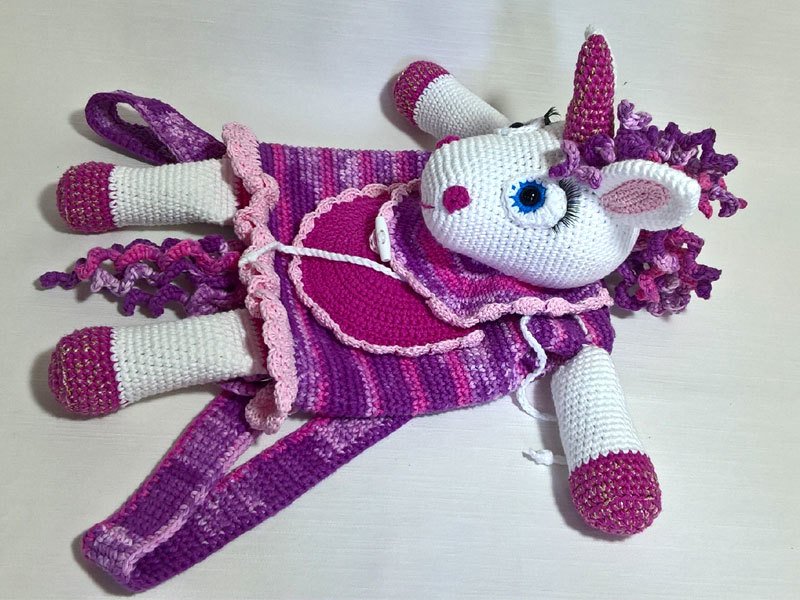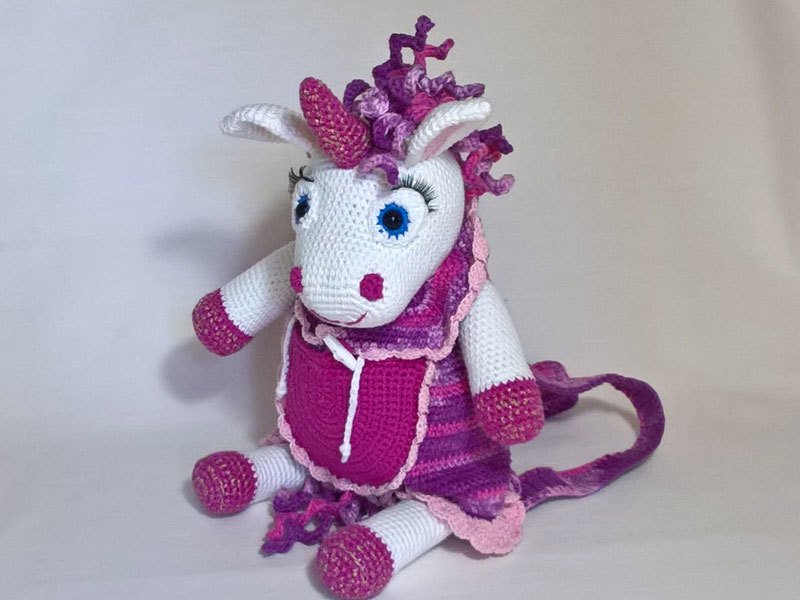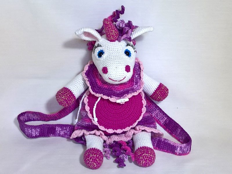 This lovely unicorn is her companion wherever she goes, its belly filled with all her most prized possessions. Admiring glances on the playground and the nursery are guaranteed.