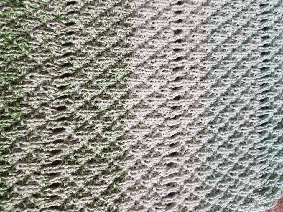 Benutzen kannst du hierfür jedes Garn mit jeder Fadenzahl. Das gezeigte Modell ist aus 3 fädigem Verlaufsgarn von Drachenstein. Am besten nimmst du 0,5 weniger in der Nadelstärke, dann "fluppt" das Muster schöner.