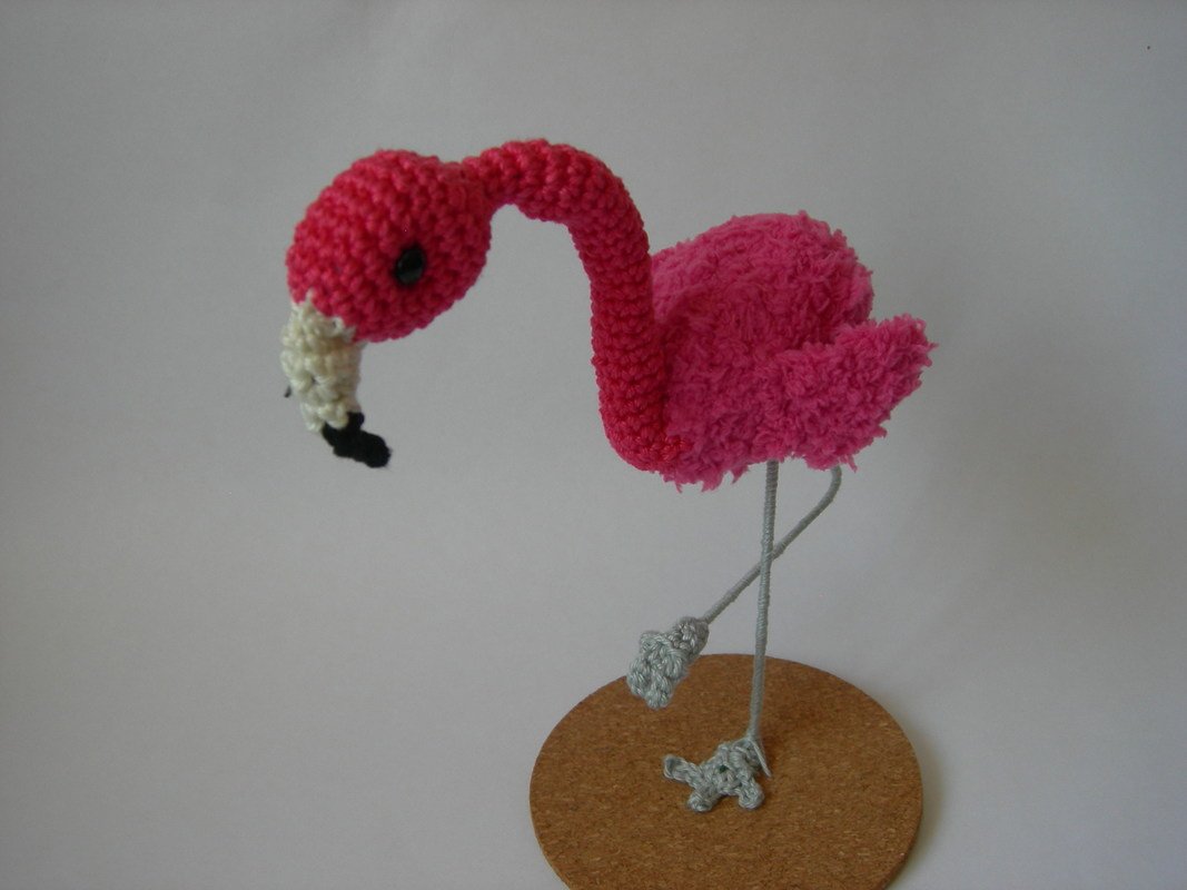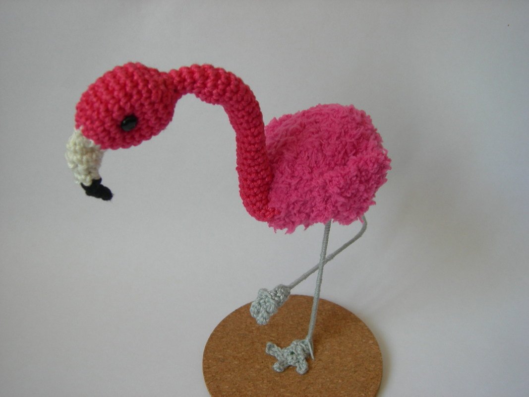 Um den Flamingo zu häkeln, sind nur Grundkenntnisse erforderlich. allerdings wird bei den Füßen etwas Fingerfertigkeit benötigt, da man nur mit wenigenMaschen in Runden häkeln.muss.