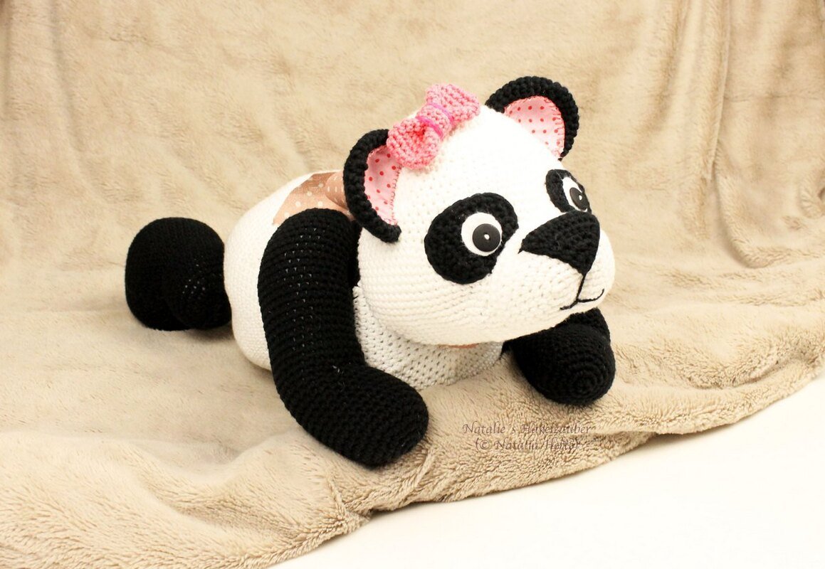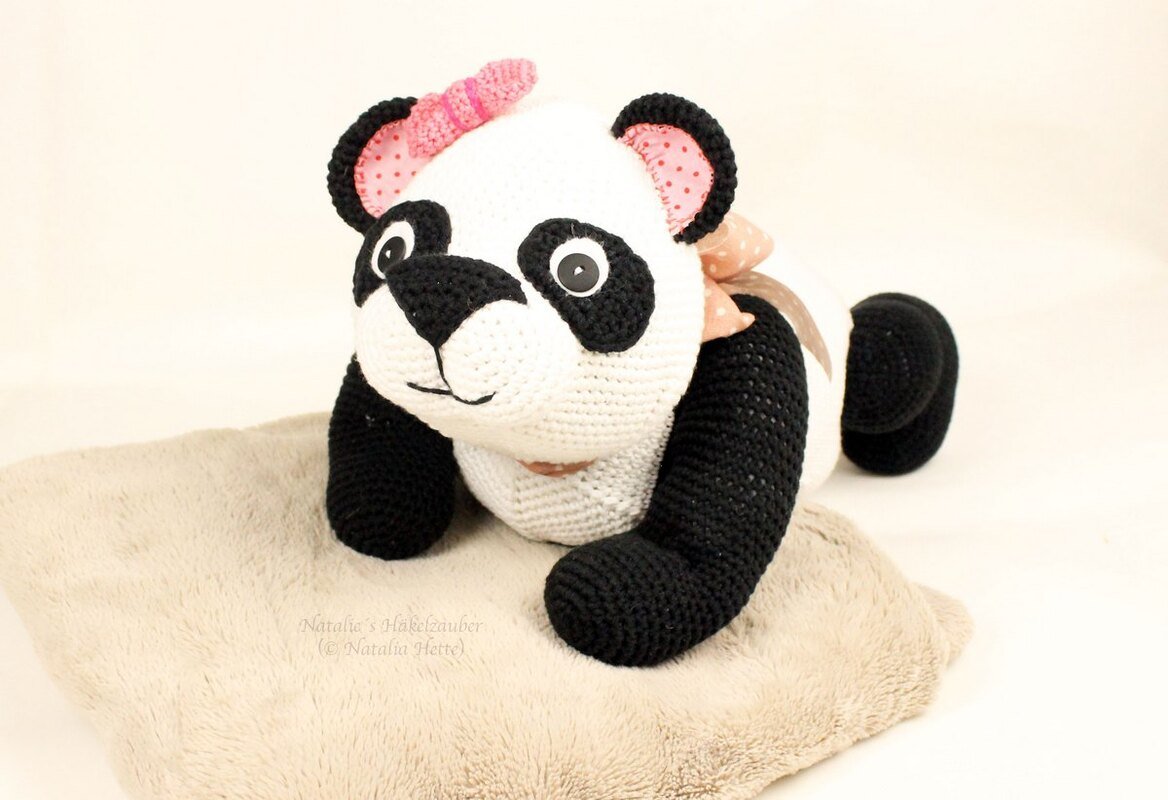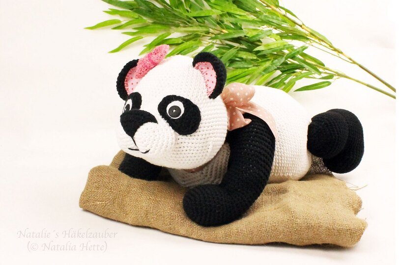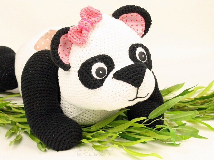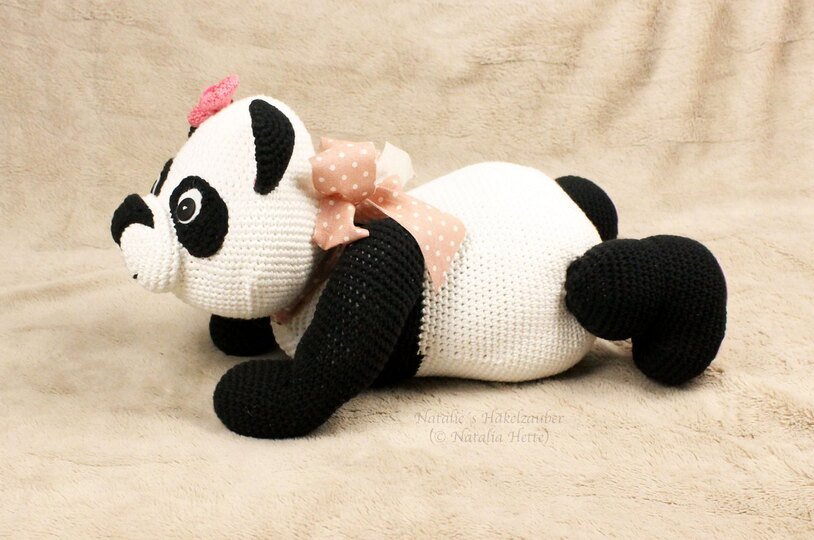 Diese Häkelanleitung besteht aus bebilderter, ausführliche Anleitung zum Häkeln von einem Kissen in der Form eines Pandas für Kinder und Erwachsene. Der Panda (das Kissen) hat einen platten Bauch und einen gewölbten Rücken, so dass es sehr gut auf den glatten Oberflächen, wie Bett, Couch oder Sessel, liegen kann. Dieses Kissen kann man auch aus kuscheliger Wolle häkeln. Zum Beispiel Rico Baby, Teddy Aran, von Rico Design und Häkelnadel Nr. 3,5 (oder mit zweifachem Faden (von zwei Knäueln gleichzeitig) mit der Häkelnadel Nr. 5,5). Je dicker ist Ihre Wolle, desto größer wird das Kissen. Wenn Sie einen Bär haben möchten, dann häkeln Sie dieses Kissen aus brauner Wolle.