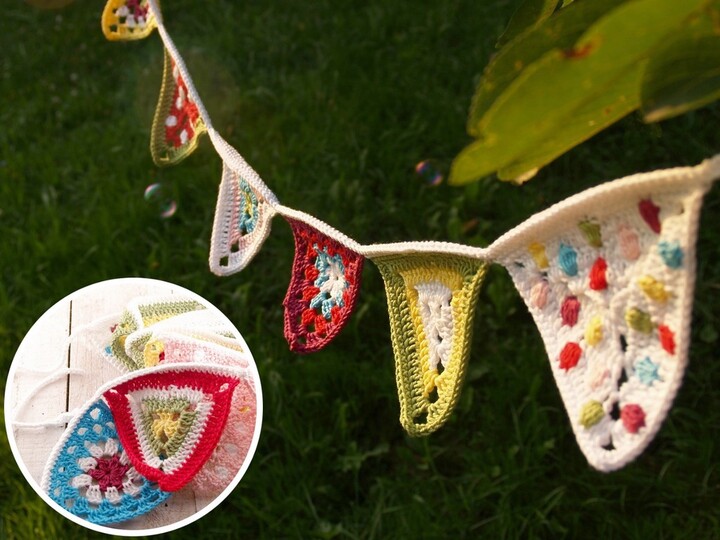 Die Anleitung zum Häkeln einer Bunten Wimpelkette erklärt dir Schritt für Schritt, wie du bei der Anfertigung vorgehst.