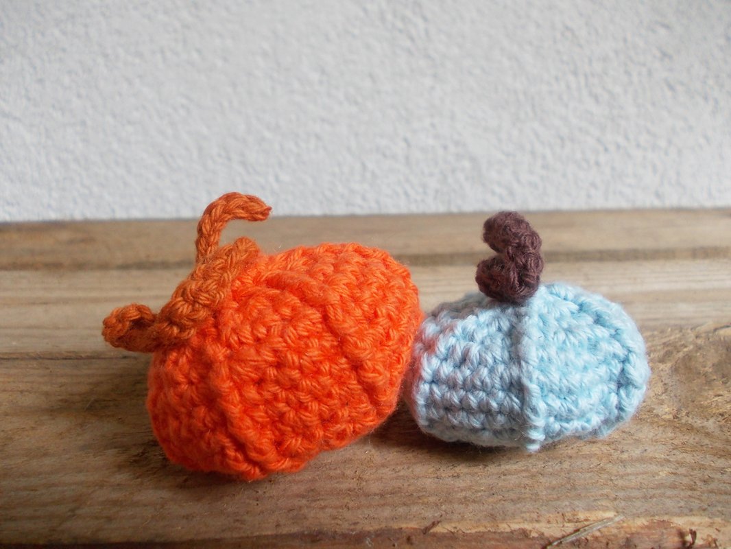 Design and Copyright by lessigfashion, Häkelanleitung für kleinen Kürbis mit Stiel