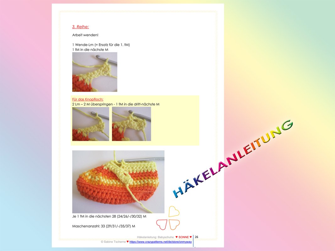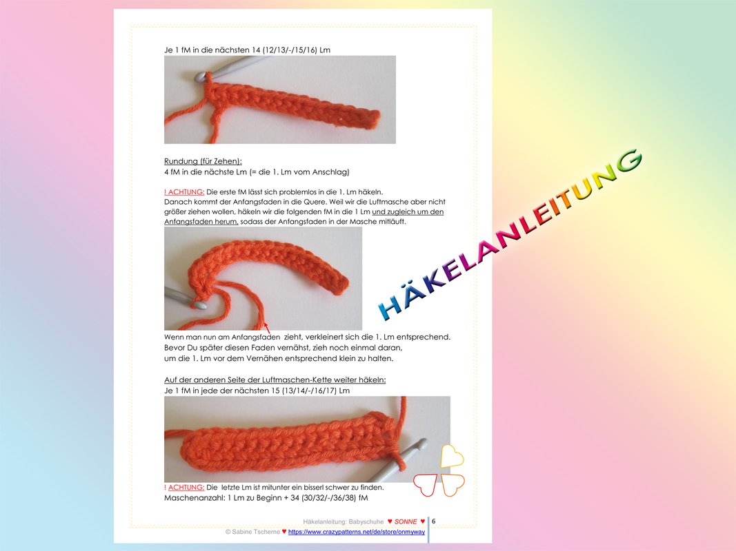 Die Anleitung ist für Häkelschuhe 5 Größen geschrieben: