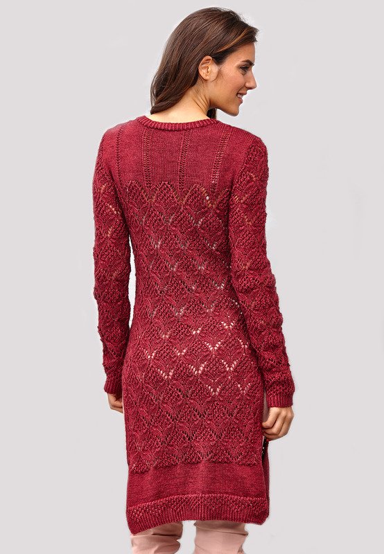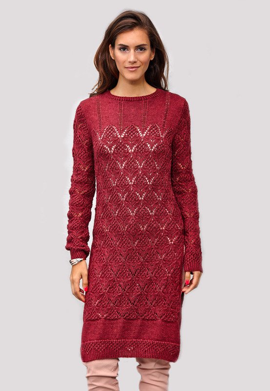 Lang Yarns "Asia" (70% Seide, 30% Yak, LL ca 145 m/50 g): ca 550 (600) g Bordeaux Fb 0061; addi-Stricknd 3 und 3,5 mm, addi-Rundstricknd 3 mm, 40 cm lang.