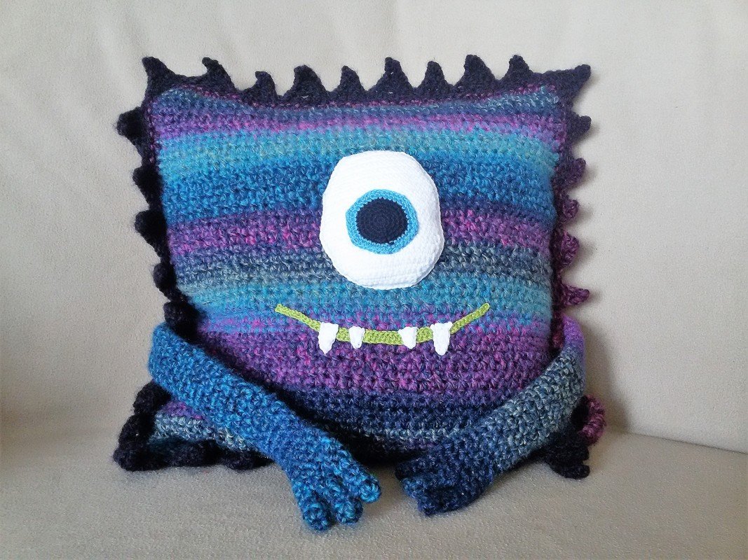 Dieses kuschelige Monsterkissen ist nicht nur eine schöne Halloweendekoration, sondern eignet sich auch zum Spielen oder Kuscheln für Kinder.