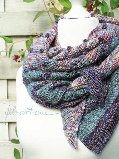 Das Tuch kann auch mit etwas dickeren Garnen (Lauflänge 250-400 m/100g) gearbeitet werden, die Anleitung ist entsprechend geschrieben.