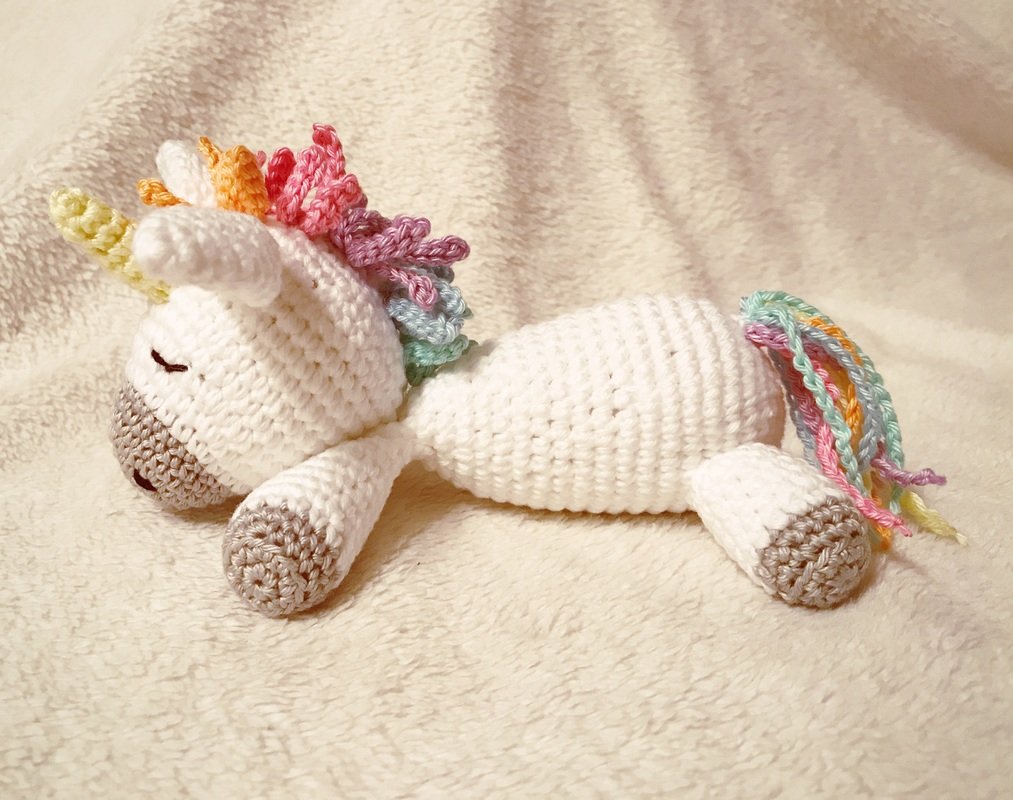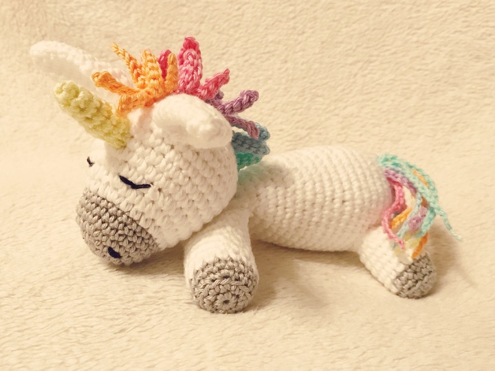 Ein Einhorn macht alle glücklich. Dieses hier ist einfach und in kurzer Zeit zu fertigen. Es wird nur aus festen Maschen gefertigt und ist somit für Anfänger sehr gut geeignet. Zu- und Abnahmen solltet ihr beherrschen sowie den Magischen Ring.