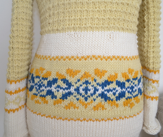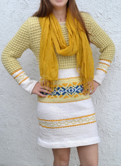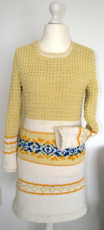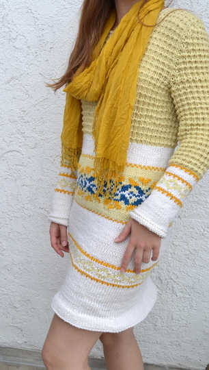 Das Kleid wird von unten nach oben erst in Runden gestrickt, später werden die Teile separat gearbeitet.