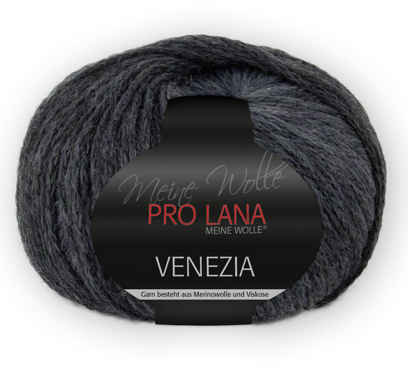 Material: 100 g Schwarz-Grau (Farbe 80), „Venezia“ (46% Merino, 46% Viskose, 8% Polyamid, Lauflänge = 175 m/50 g) von PRO-LANA.de