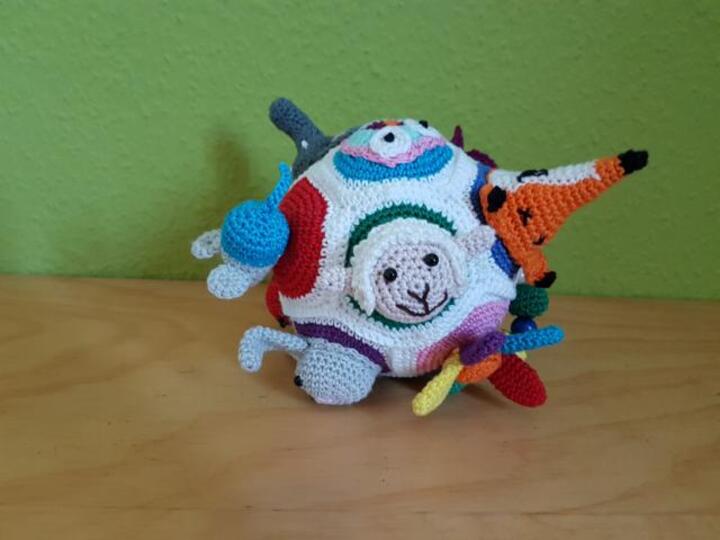 In meiner Anleitung weise ich darauf hin, dass es kein zertifiziertes Kinderspielzeug ist und ich aus rechtlichen Gründen eine Haftung ausschließen.(will mich nur schützen ;)) Meine Nichte hat den Ball geliebt.